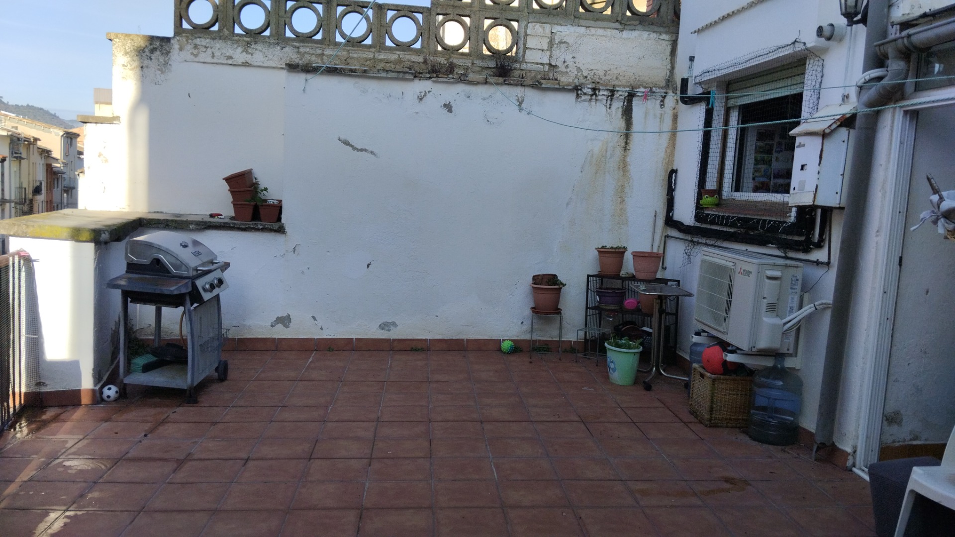 Este piso en la primera planta es perfecto para una familia, ofreciendo cuatro habitaciones (tres interiores y una exterior con balcón), un amplio comedor, salita, cocina, baño con plato de ducha, galería interior y un patio exterior muy espacioso.